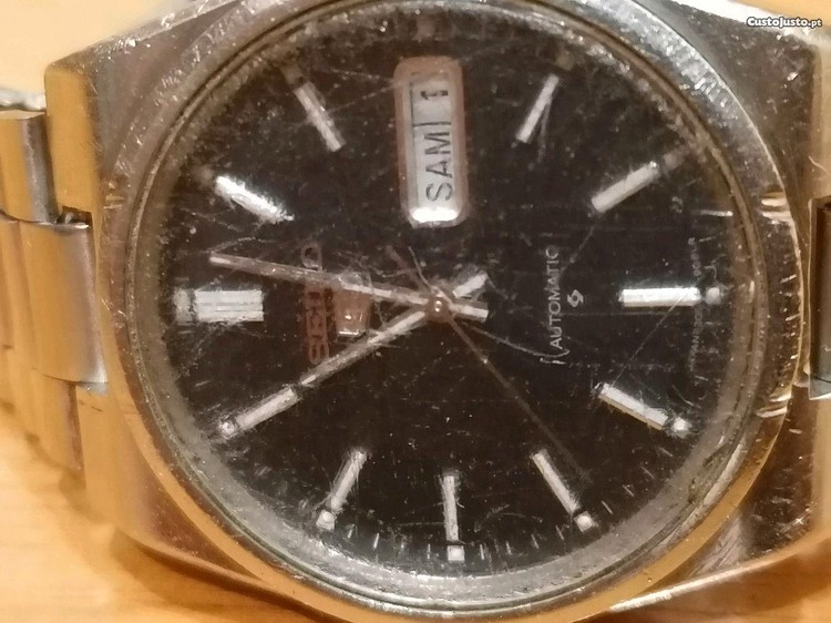 Relógio antigo automatic seiko 6309 905 LR a funcionar várias marcas cosméticas na caixa de aço e no bezel,poderá ser polido, o vidro está muito riscado e necessita de ser substituído. Bracelete em aço seiko, vendido tal como se encontra.ver fotos e estado.