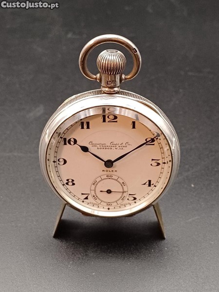 Relógio de bolso antigo da marca Rolex, em prata, marcado e contrastado. Em marcha.