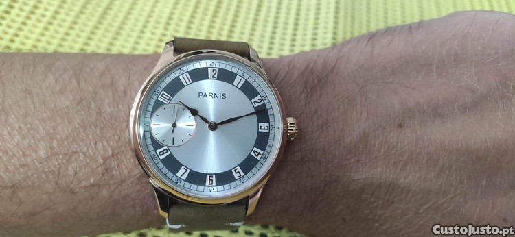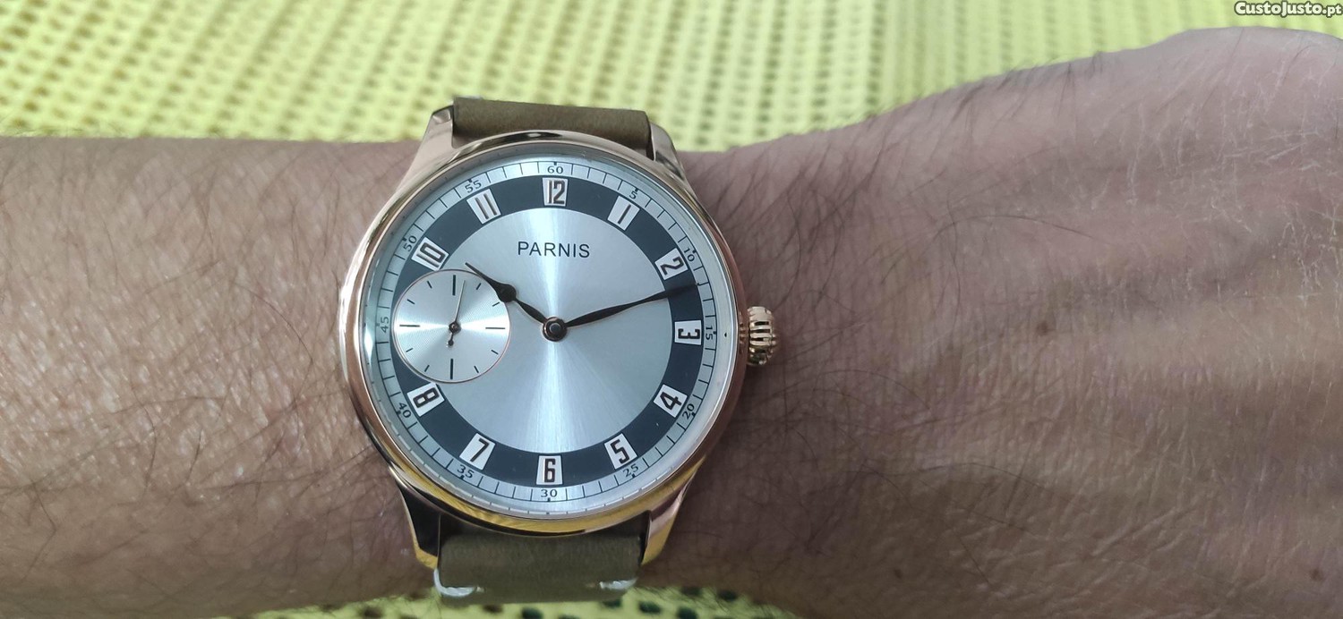 Relógio Parnis mecânico de corda manual, vidro novo, o mostrador impecável e a caixa está sem riscos e mede 44mm sem contar a coroa.