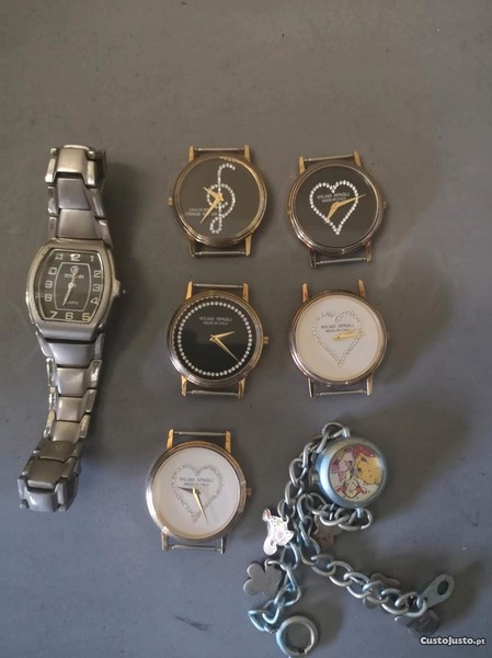 7 Relógios, 5 novos e 2 usados, a precisar de pilhas. Tudo Eur. 10,00