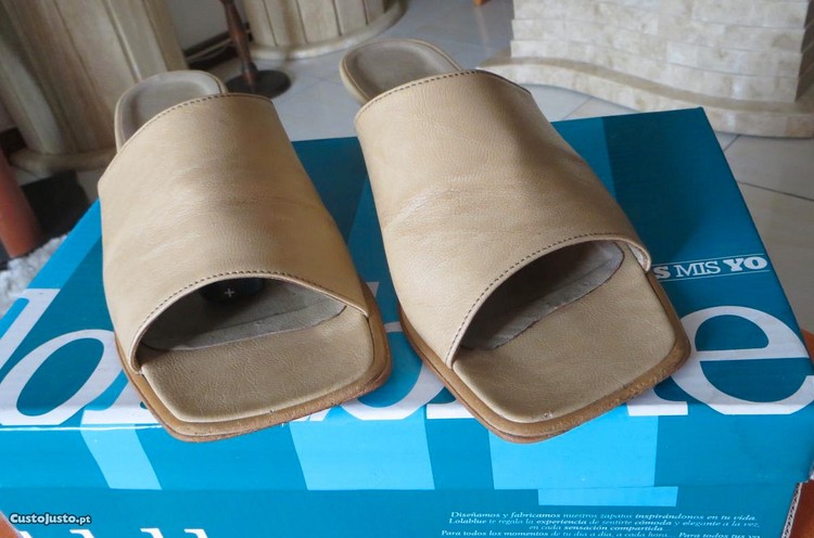 Preço: 6 €Sandália Linha Italy 100 % pele - Nº37, cor Camel, Com ligeiro salto de 3 cm de altura