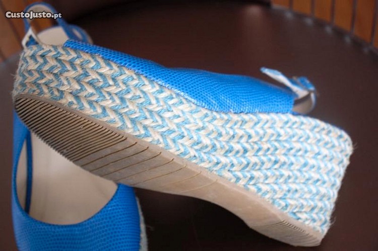 Sandálias em pele azulão com corda originais e como novas da marca L. K. BENNETT. O Tamanho é o 37. Tem um tacão compensado de 7 cm.