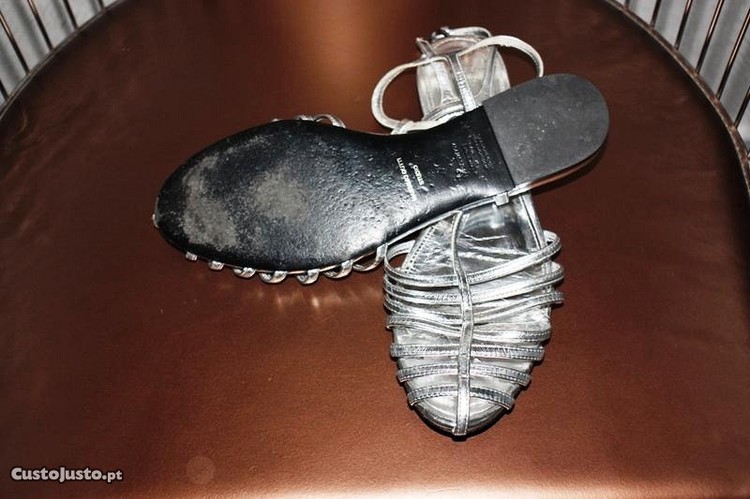 Preço: 22 €Sandálias em pele prateadas baixas da Massimo Dutti T. 37