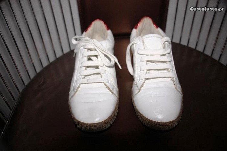 Preço: 20 €Sapatilhas brancas em pele com sola mesclada MANGO tamanho 36