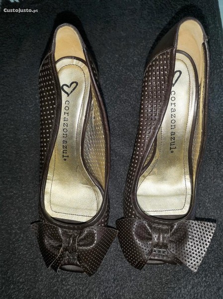 Sapatos Pele Castanhos Senhora - Corazon Azul - Tamanho - 37 - Praticamente Novos