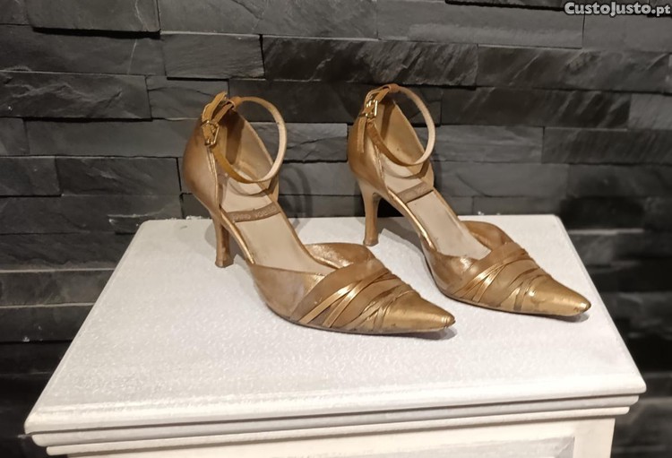 Preço: 15 €Sapatos Pele e camurça salto alto dourado e castanho Nº 37 - Marca : Gino Valleo