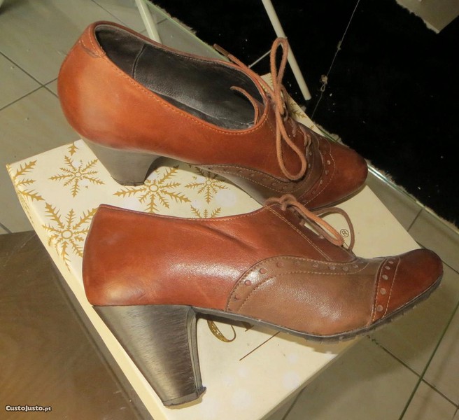 Preço: 10 €Sapatos Pele Genuína, atacadores, Nº 37 - Marca: Manuel Alves, Cor: 2 tons de castanho e atacadores