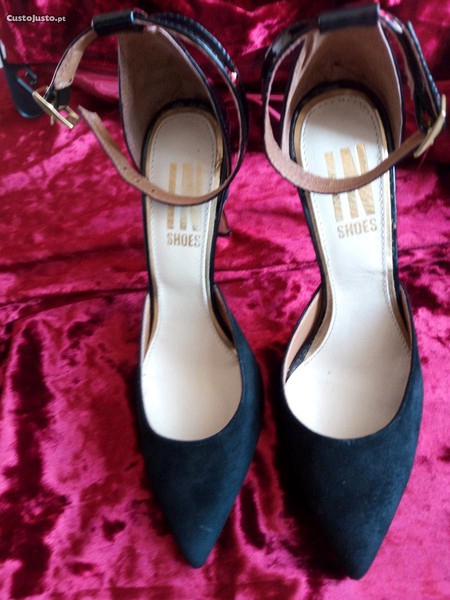 Vendo sapatos pretos com pormenor em verniz, em pele genuína da IN Shoes, novos nunca usados