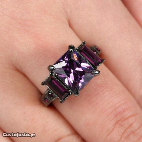 Banhado a Ródio, com Zircónias cúbicas de cor lilás.