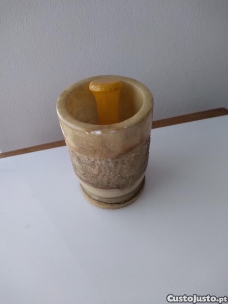 Preço: 12 €Almofariz cilíndrico e mão em pedra alabastro