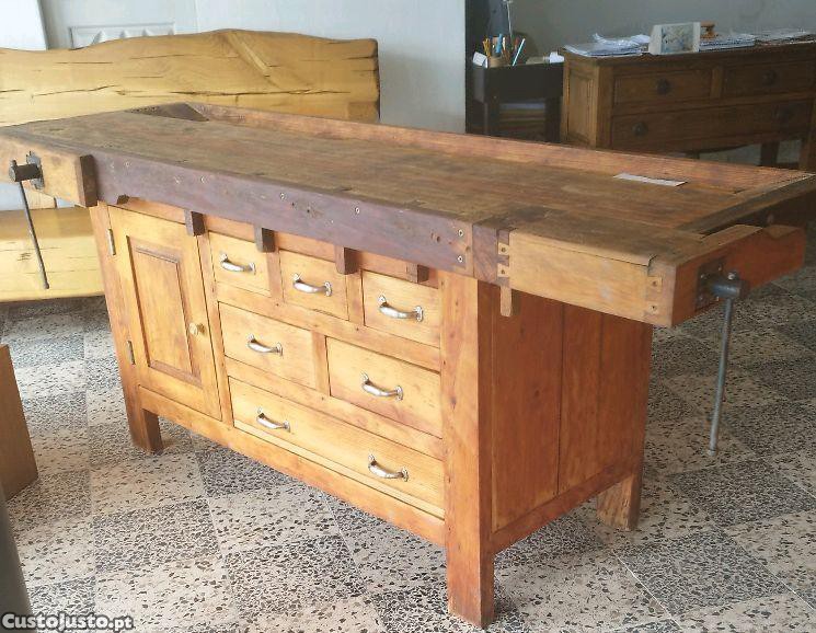 Bancada em madeira maciça com portas e gavetas original em madeira maciça de Riga