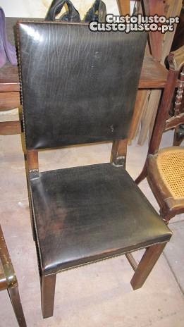 Uma cadeira solta estofada a pele em madeira de carvalho.