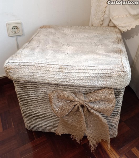 Caixa grande em palhinha, tratada, muito resistente, sendo a tampa e fundo duros, para se poder usar por exemplo, coma uma mezinha, conforme se vê nas fotos, onde faz de mesa para um grande e peado jogo de xadrez.