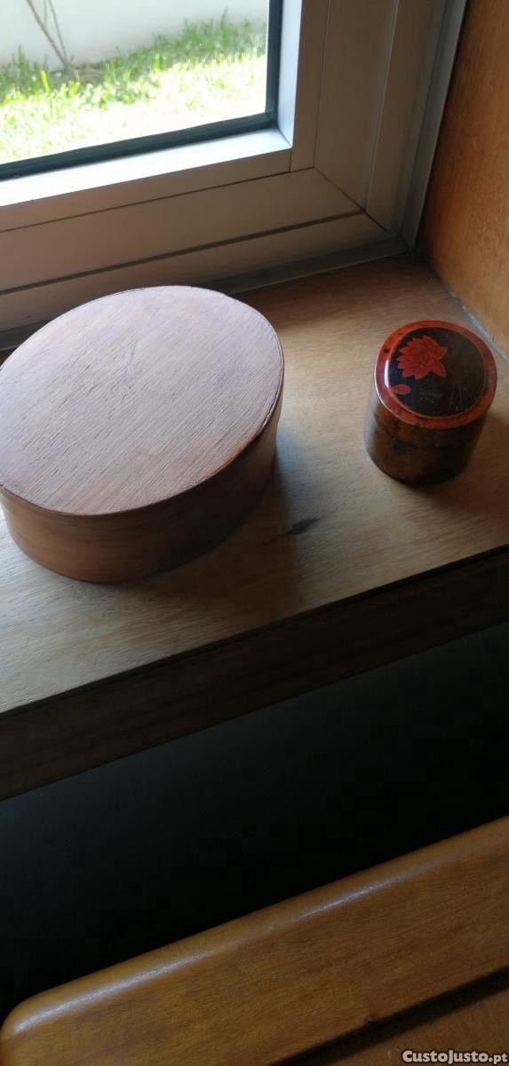 Caixinha de formato oval, em material madeira com dimensões 15x12.5x5.3.