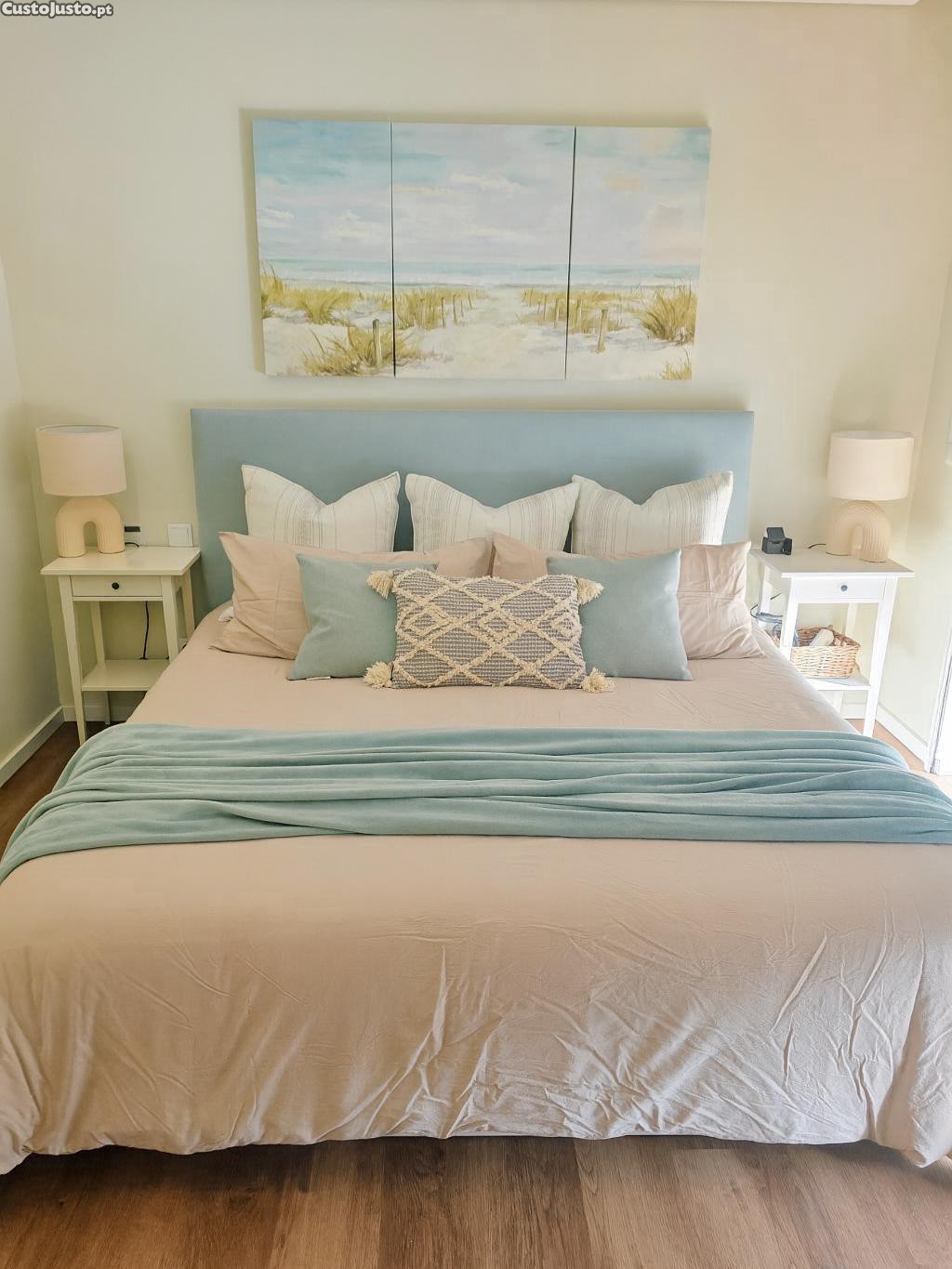 Cama King, mais colchao viscoelastico, mais cabeceira almofadada e de tecido macio. Em muito bom estado.