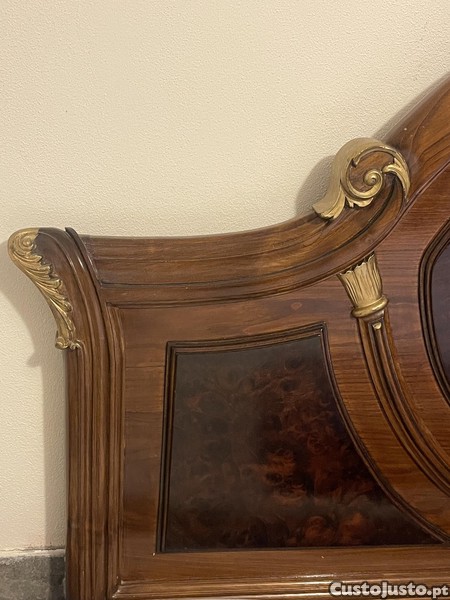 Preço: 250 €Cama de casal com raiz de nogueira e roupeiro em madeira de castanho