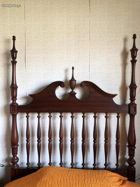 Cama em mogno em perfeito estado com estrado incluído.