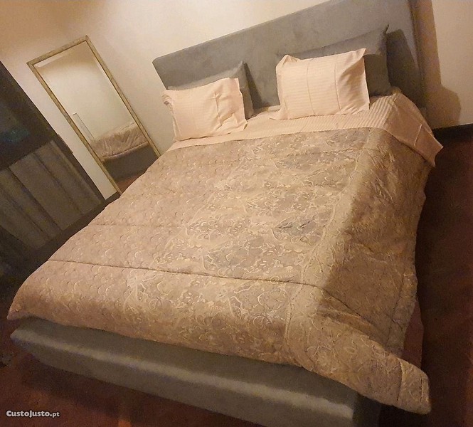 Preço: 750 €Cama NOVA King Size estofada em tecido lavável cinza