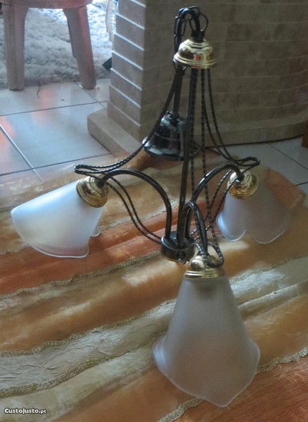 Preço: 60 €Candeeiro 3 copos forma jarro, armação Bronze - Diâmetro total: 55 cm Altura total: 67 cm