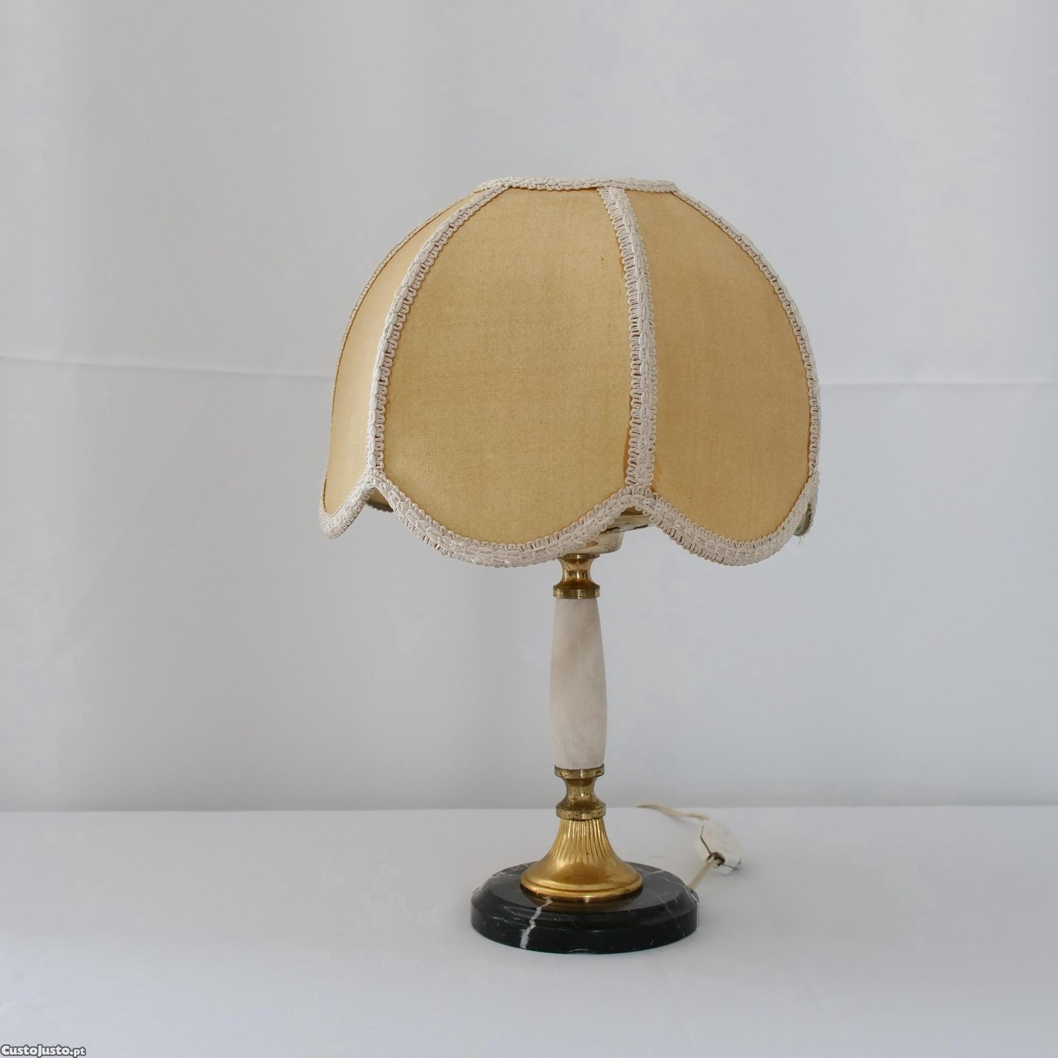 Candeeiro de mesa com estilo clássico, típico de peças fabricadas a partir dos meados do século XX.