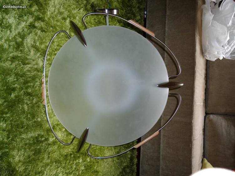 Candeeiro de teto em alumínio e cerejeira em ótimo estado, design muito bonito. Portes à cargo do comprador.