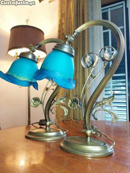 Preço: 140 €Candeeiros antigos de mesa tulipas Assinadas