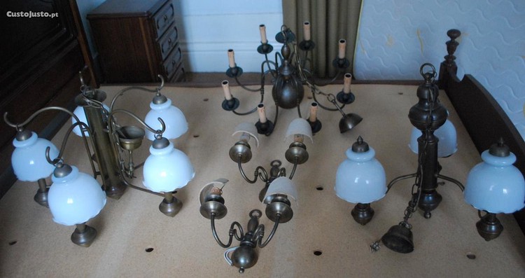 Tem 5 Fotos - Vendo: 20,00 euros; 25,00 euros; 35,00 euros; 40,00 euros Candeeiros de Teto e de Parede em Metal Bronze Muito Antigos (Com Mais de 50 Anos)