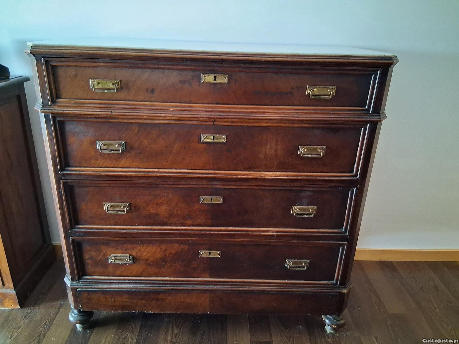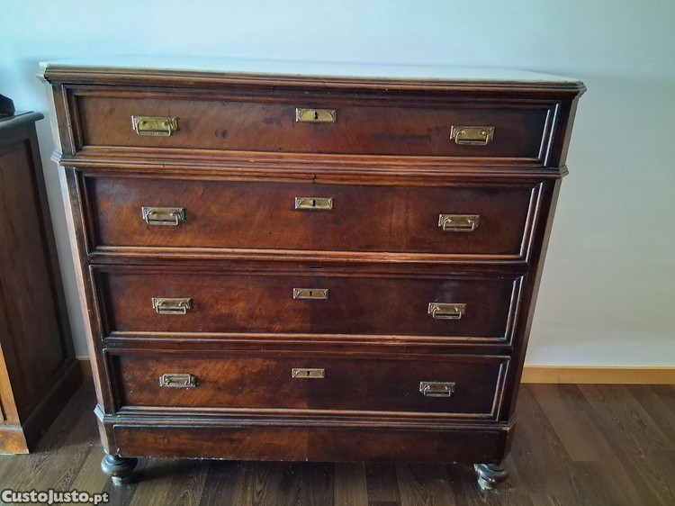 Comoda em madeira com tampo em mármore inicio sec