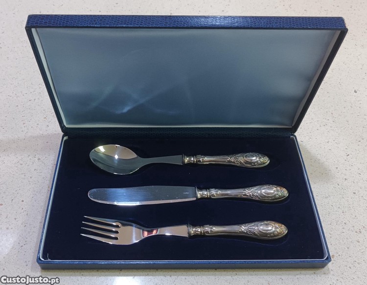 Conjunto 3 Talheres criança em prata e inox - Novo