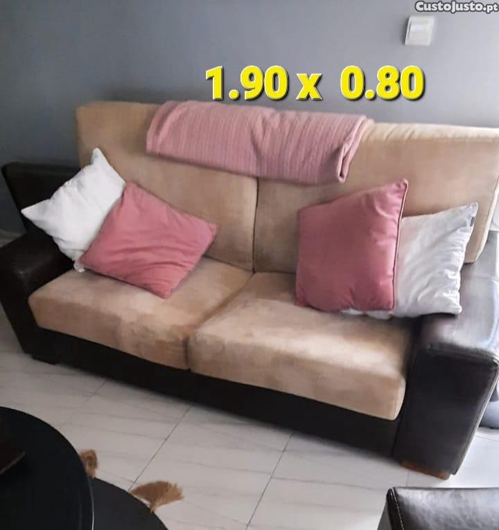 Conjunto de sofás em pele com acentos em tecido. Em muito bom estado de conservação. Medidas nas fotos. Não inclui decoração. Transporte por conta do comprador. Não envio por transportadora. Negociável