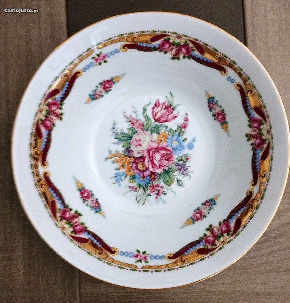 Conjunto de porcelana da marca Limoges Vizavi, fabricado em Itália em meados do século XX, constituído por uma tigela e cinco pratos côncavos pequenos. Ideal para salada de fruta.