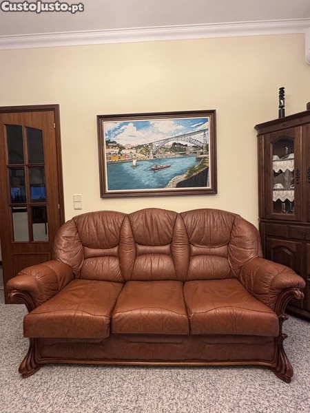 Conjunto de um sofá de 3 lugares e 2 poltronas em pele natural. Ótimo estado.