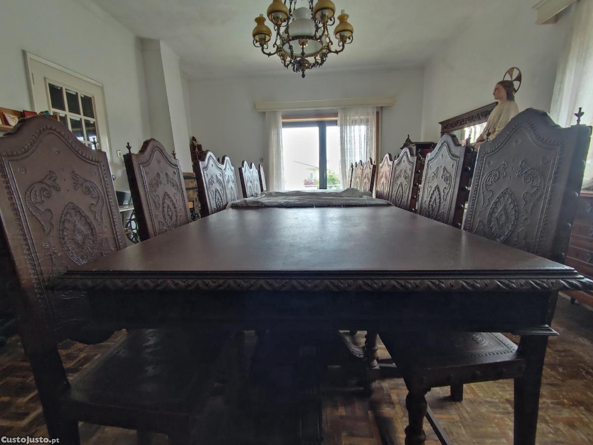 Preço: 800 €Conjunto Mobilia Antiga Sala Vintage Luis XV (mesa + 16 cadeiras + Cristaleira + Movel Parede)
