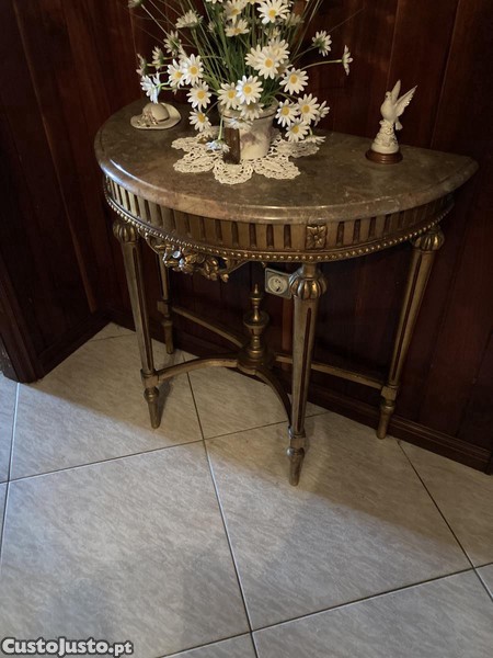 Vendo credência com tampo de mármore. Medidas aproximadas: altura 77cm, largura máxima 80cm, profundidade máxima 40cm. A retirar junto ao Corte Inglès de Gaia.