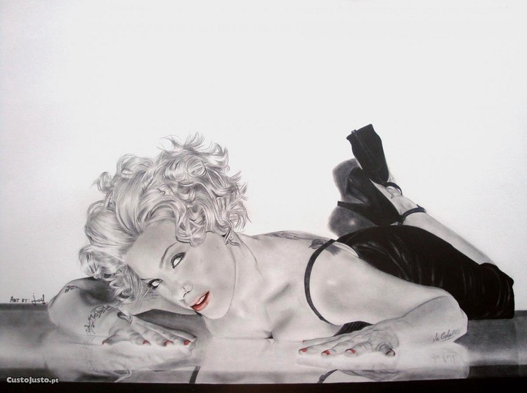 9 dias de trabalho em que as expressões são representadas para o papel exaustivamente, utilizei os tons vermelho nos lábios e unhas e que aparecem todos os pormenores fielmente como também é possível visualizar em uma das fotos a respectiva comparação.