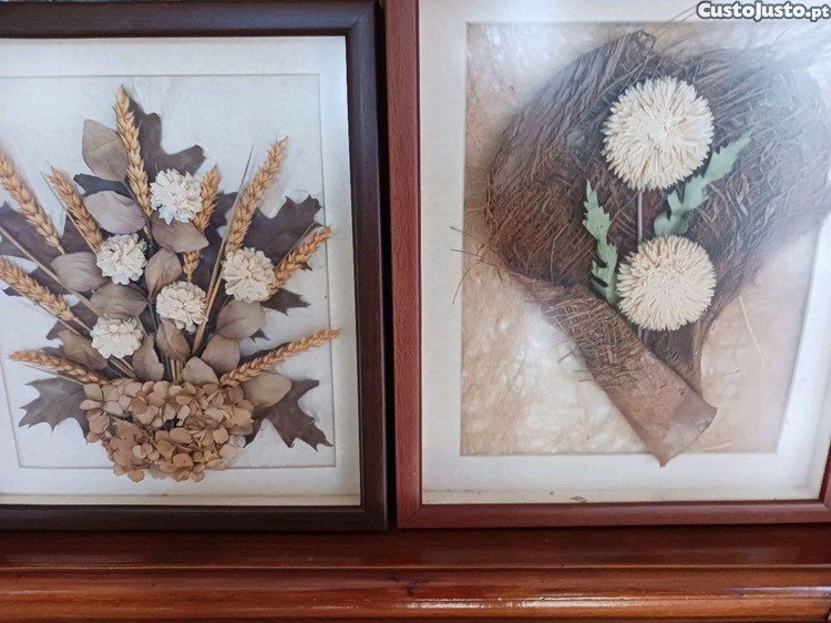 Preço: 45 €Dois quadro com flores secas e espigas de trigo,com moldora em madeira e vidro,novos