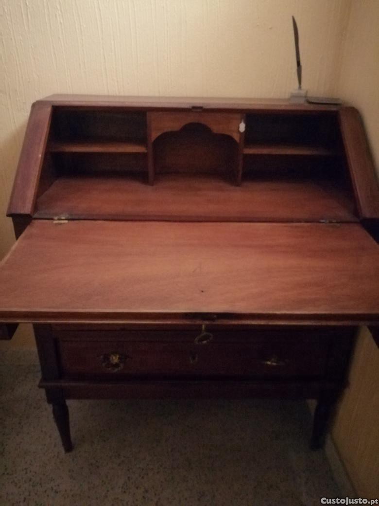Escrivaninha em madeira com duas gavetas pequenas e duas gavetas grandes