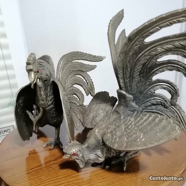 Preço: 35 €Esculturas de casal de galináceos em metal