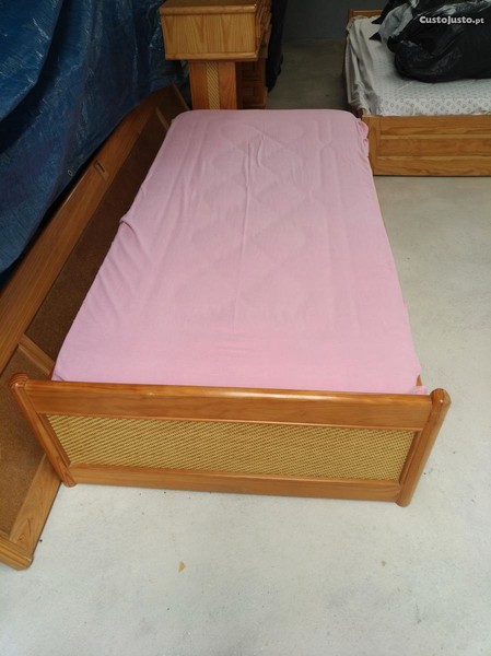 Estúdio em madeira composto por 2 camas de solteiro com colchão, secretária e 2 mesinhas de cabeceira