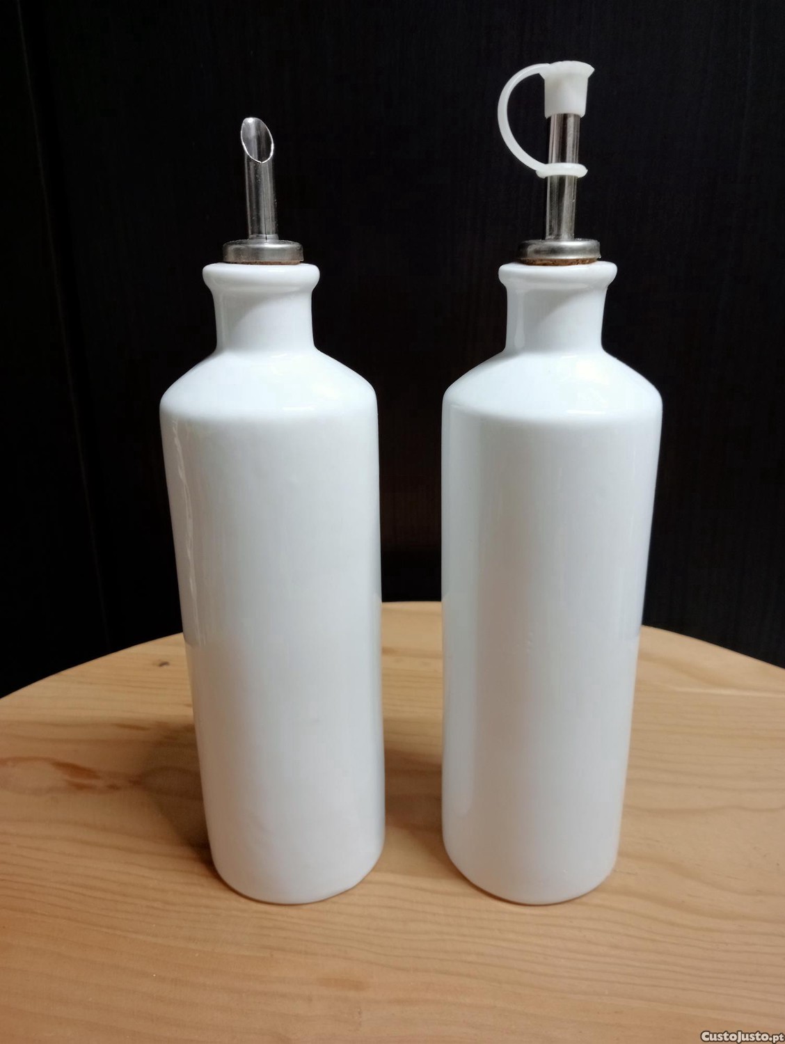 Com recipiente para azeite e outro para vinagre