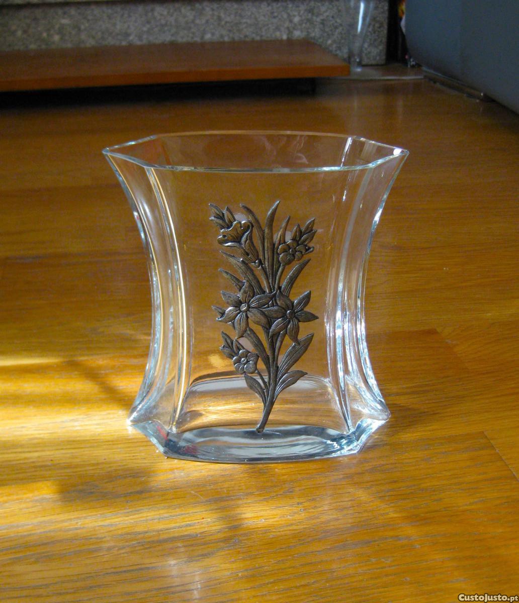 Jarra de Cristal com Ramo de Flores em Prata Incrustado