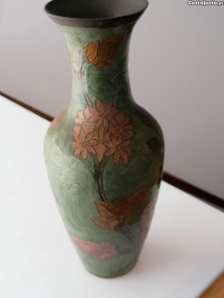 Jarra em metal Índia, de meados do Sec. XX, com a técnica cloisonné e pintura policromada floral.