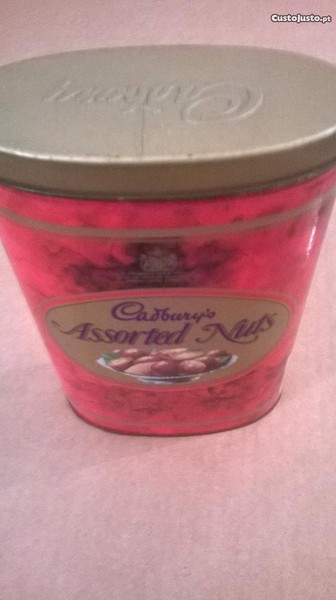 Lata vazia em chapa da Cadbury's Assorted Nuts, distribuição da Longa Vida de 1990.