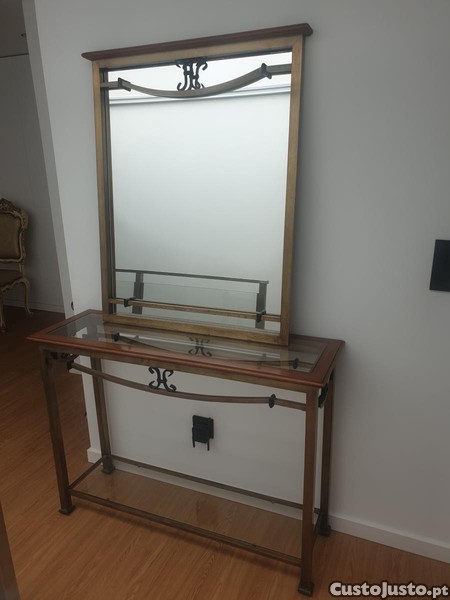 Preço: 135 €Lindíssimo Conjunto Credência + Espelho em Latão e Ferro