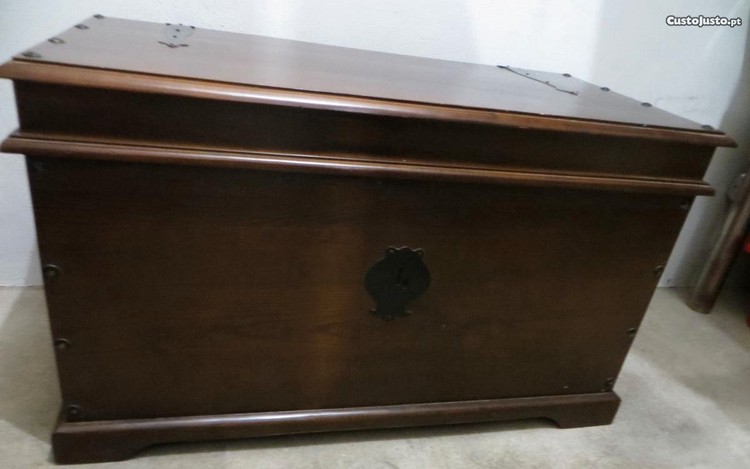 Preço: 245 €Mala rústica, madeira maciça, Exótica, ferragens medievais - Esta mala está praticamente como nova