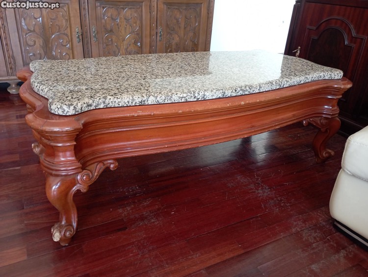 Mesa de centro antiga com o tampo de mármore