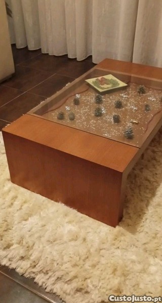 Vendo mesa de centro para sala de estar retangular em excelente estado com um fundo por baixo do vidro que dá para colocar vários tipos de decoração consoante gosto da pessoa, as medidas dela são: 100cm comprido, 55cm de largura, 30cm de altura e com 5.5cm de espessura. Não faço envios, o interessado tem que a vir buscar.