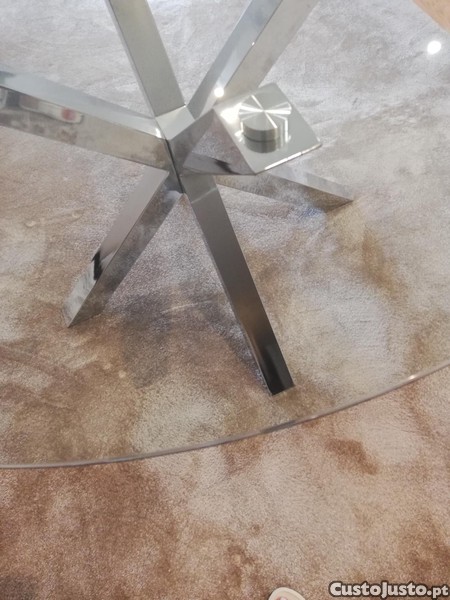 Mesa de jantar com tampo de vidro temperado nova. Tem 120cm de diâmetro.