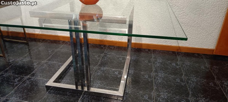 Mesa em aço inox pulido com vidro normal de 15mm 1.40 x 1.40 nova de exposição