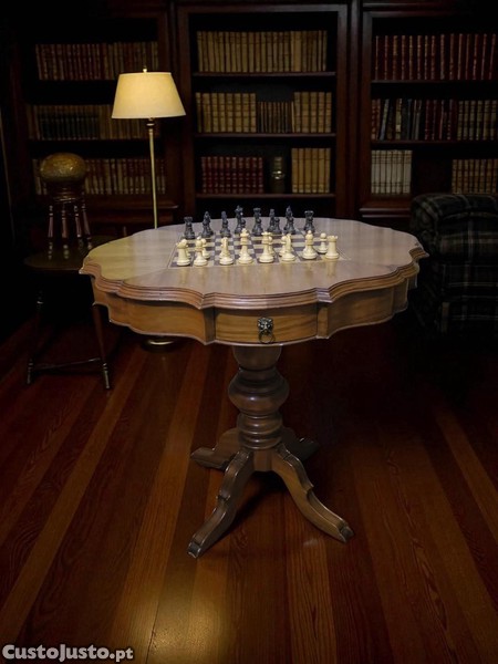 Preço: 200 €Mesa de jogo madeira maciça oferta peças xadrez